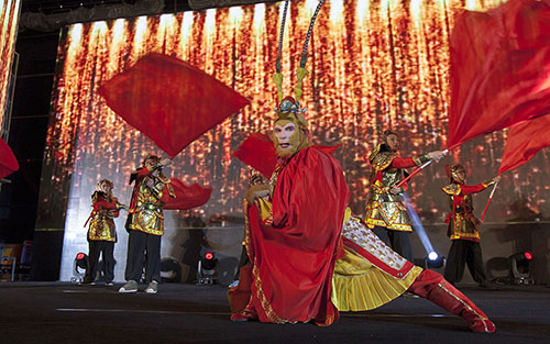 舞蹈“旗鼓相當(dāng)猴王獻(xiàn)瑞”的霸氣表演一開(kāi)場(chǎng)就博得喝彩,全場(chǎng)沸騰