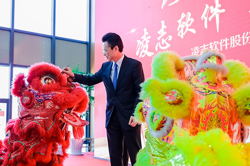 凌志軟件董事長兼總裁張寶泉先生為瑞獅進行點睛后,一段象征吉祥如意、事業(yè)興旺的舞獅表演,拉開了凌志軟件喬遷慶典的序幕。